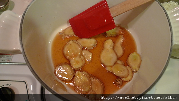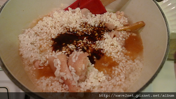 倒入米及醬油膏拌均勻再加水大火煮滾後關小火煮10分鐘