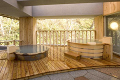 當然住在溫泉旅館怎能沒有泡湯呢?基於隱私這裡就不多做介紹,只附上照片供參考,但是那天下著大雨在戶外泡湯感覺還挺特別的。