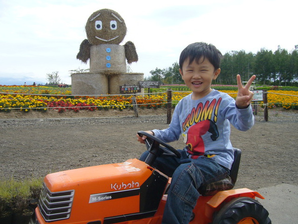 很可愛的小型農耕車,還有後面的大型牧草人