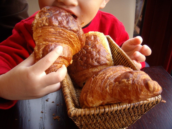 超大個可頌就放在桌上自己取用,但是要付錢的.